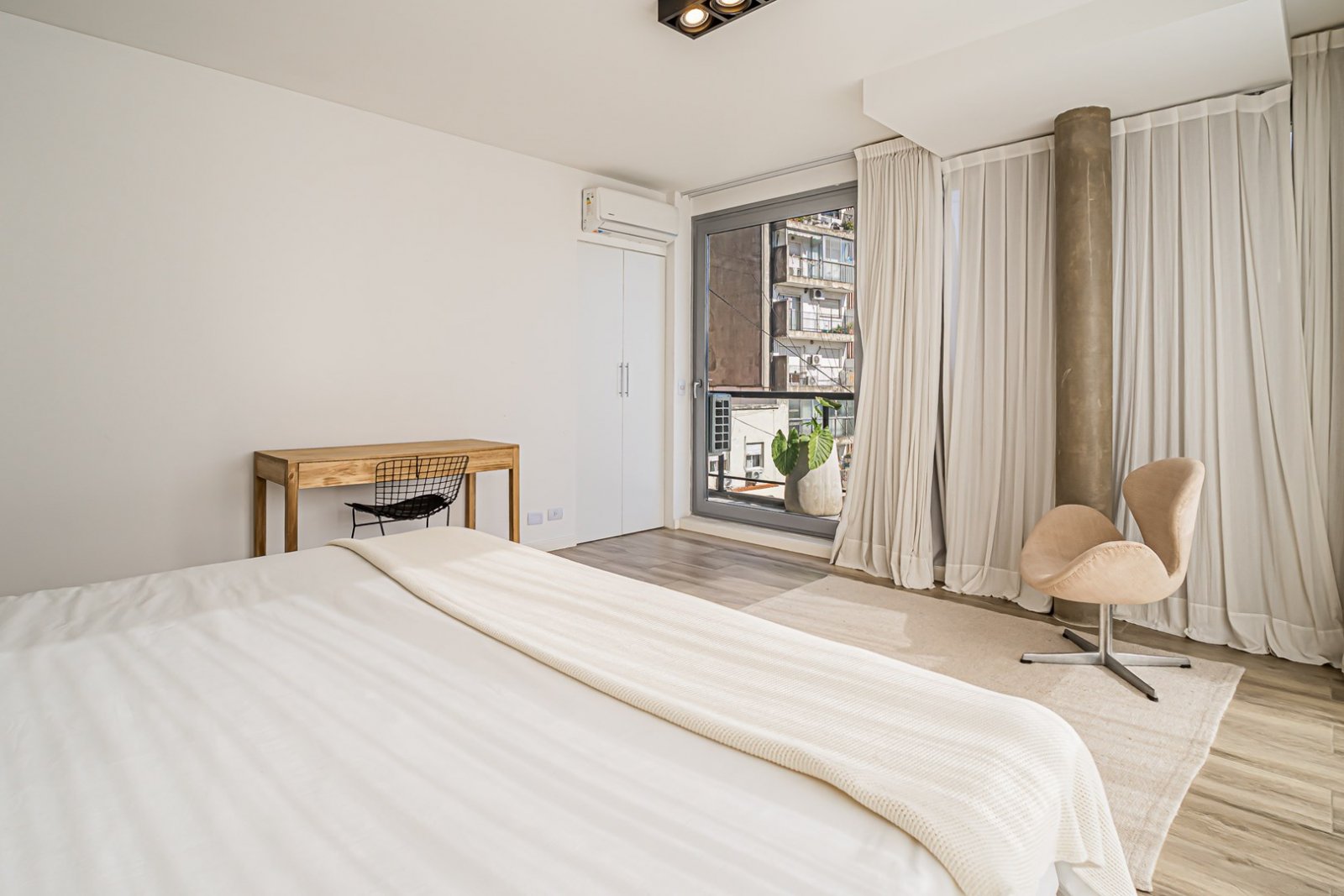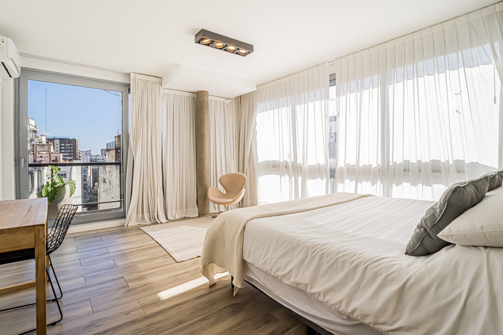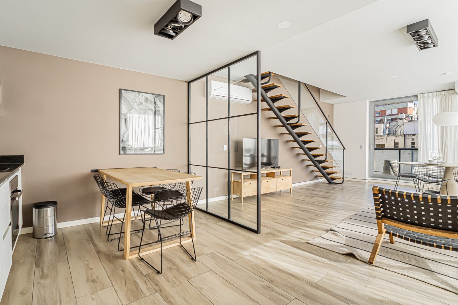 Piso de categoría con palier privado, dispuesto en un departamento de tres ambientes en duplex al contra-frente muy luminoso, vista abierta y franca con orientación Oeste. Unidad desarrollada en el noveno y décimo piso. Pisos porcelanato simil madera, aberturas de aluminio de piso a techo que permiten gran ingreso de luz natural, hojas de vidrio DVH. Cerradura digital inteligente con código o huella. La cocina y living comedor mantienen un diseño de arquitectura amplio en un solo espacio con todo integrado. Horno y anafe eléctrico. Mesada de granito negro y bacha de acero inoxidable. Escalera en hierro negro, madera y vidrio que acompañan la estética. Dos baños completos con bañera. Aire acondicionado frío calor en todos los ambientes. Piscina, solarium, laundry, seguridad privada 24 hs. La unidad se entrega con los tres aires acondicionados, las cortinas, artefactos de iluminación y las mampara de baños. - El edificio se encuentra ubicado a cuatro cuadras del subte, línea H y línea D, a media cuadra de Av. Santa Fe, a dos cuadras de la Facultad de Medicina de la Universidad de Buenos Aires, a tres cuadras de Av Córdoba, a seis cuadras del Parque Vicente López y Planes. Un barrio lleno de propuestas culturales y muy bien conectado con variados medios de locomoción. - Accesible: NO (Ley 5.115) Accedé al recorrido virtual 360º para ver cada rincón del inmueble, planos de distribución, video y fotos DHR. Toda la información del aviso, incluyendo medidas, precio, impuestos, servicios, etc. son estimativos, sujetos a modificación y no vinculantes, según lo dispuesto en el art. 973, Cód. Civ. y Com.