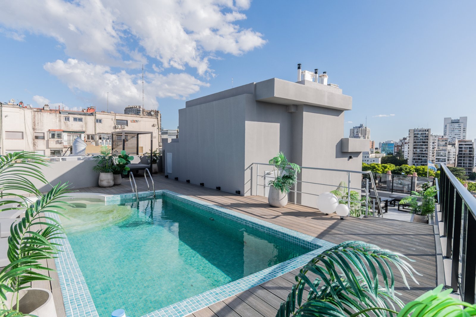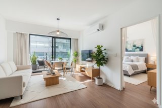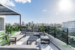 Departamento de dos ambientes al frente con balcón aterrazado, ubicado en el tercer piso del edificio Atrium Eslovenia, apto profesional. Cuenta con living comedor con salida a un amplio balcón, toilette de recepción y dormitorio principal en suite con vestidor y salida a balcón privado. La cocina está integrada, completamente equipada con anafe y horno eléctricos por inducción, espacio para lavarropas y lavavajilla. La unidad se entrega con carpinterías de aluminio con DVH, pisos de porcelanato, griferías y terminaciones de primera marca. El living y el dormitorio cuentan con equipos de aire acondicionado instalados. El edificio dispone de tres subsuelos de cocheras y 12 pisos, con amenities ubicados en el último nivel: • Piscina y solárium. • Terraza con parrillas y horno de uso común. • Sky lounge con vistas abiertas. • Seguridad 24 horas mediante tótem. • Sistema de ingreso digital Hipcam. Edificio terminado. No es apto crédito. Situado sobre Av. Luis María Campos, esquina República de Eslovenia, en el barrio de Las Cañitas. A metros del Campo Argentino de Polo, Hospital Militar Central y las Barrancas del Regimiento de Patricios. Próximo a Av. del Libertador, Boulevard Chenaut, el Hipódromo de Palermo, Solar de la Abadía, restaurantes, bares y comercios de la zona. Área con muy buena conectividad a transporte público y espacios verdes cercanos. Toda la información del aviso, incluyendo medidas, precio, impuestos, servicios, etc. son estimativos, sujetos a modificación y no vinculantes, según lo dispuesto en el art. 973, Cód. Civ. y Com.