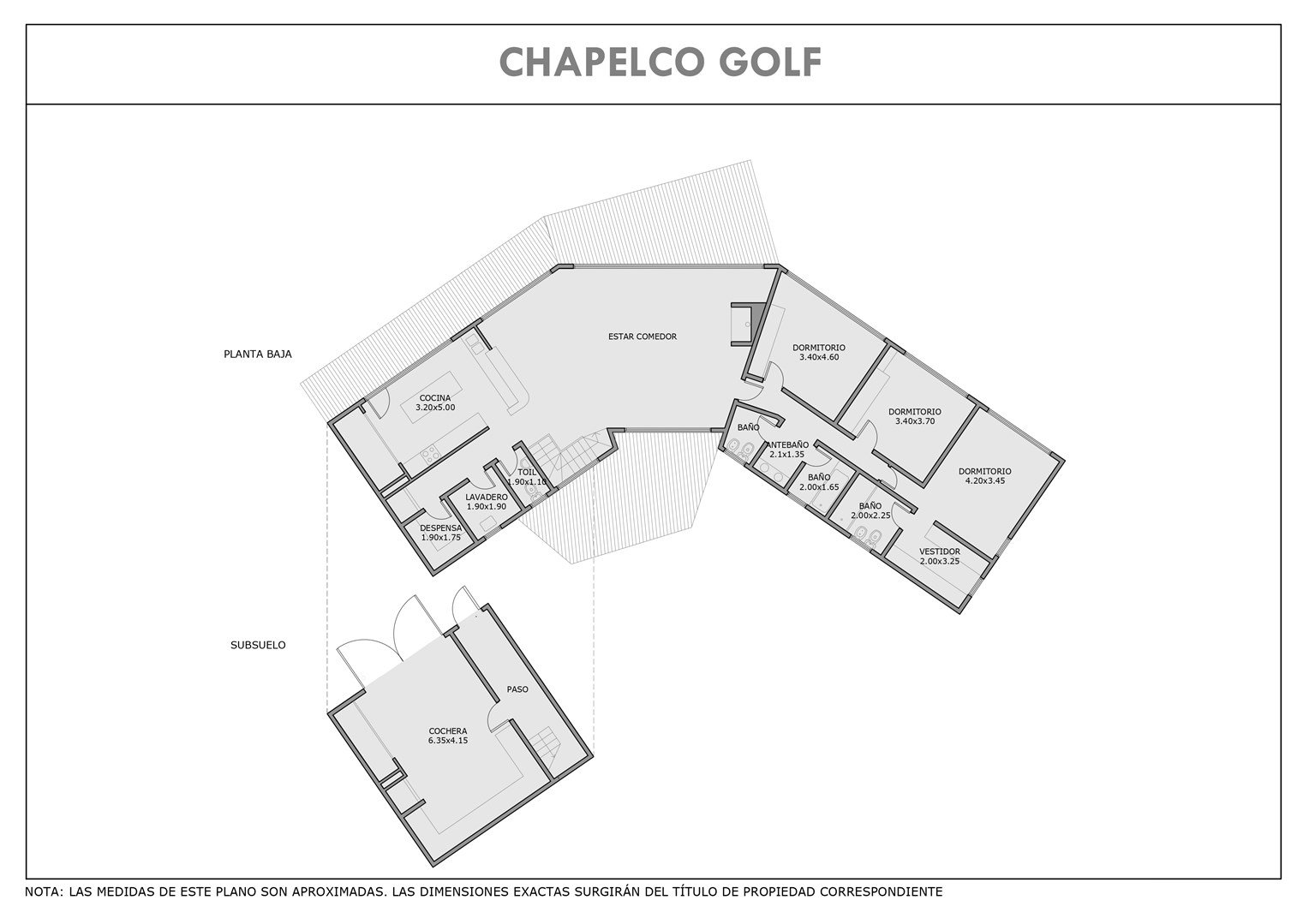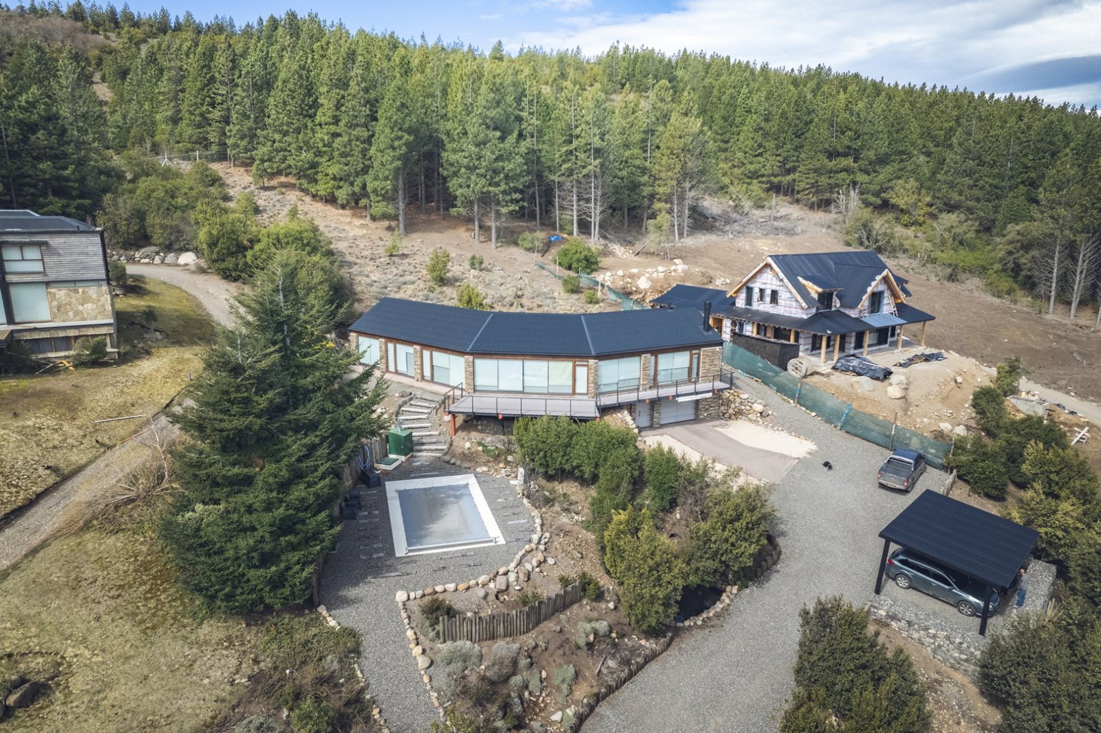 VENTA - ACEPTA TERRENO EN PINAMAR/ CARILÓ EN FORMA DE PAGO. Casa de 5 ambientes con garage cubierto, pileta climatizada y gran jardín parquizado. Ingreso por subsuelo por hall de recepción, conectado con la cochera cubierta para dos vehículos, que posee porton levadizo automatico y espacio para colocar montacarga/ascensor. En planta general, ingreso por amplio living comedor con vista abierta y salida al deck/balcón de material WPC rehau. Cocina completa con muy buen espacio de guardado, una isla, y parrilla cubierta de acero inoxidable. Toillete de recepcion, lavadero independendiente y espacio de despensa. Tres amplios dormitorios. Primer baño completo con ante baño y sector de ducha con bañera separada. Dormitorio principal en Suite y Vestidor. Todas las Aberturas son REHAU de PVC con vidrios DVH y un vidrio exterior eclipse con protección contra los rayos UV. La calefacción es por losa radiante, para lo cual posee doble caldera, cinco circuitos y termotanque de alta recuperación. La Casa se encuentra emplazada en un lote de 2.700 m2, con gran trabajo de movimiento de suelo y parquización, con riego computarizado por aspersión. Posee grupo electrógeno GENERAC (a gas) con transferencia automática. La casa se encuentra en el exclusivo barrio Chapelco Golf, a metros del hotel Loi Suite y muy cercano a calle asfaltada, a pocos kilómetros del Aeropuerto Chapelco. Comercializa "EXEQUIEL PETAGNA - COMPROMISO INMOBILIARIO" - CMyCPN nº 722 - Av San Martin 436, Local 5 - San Martín de los Andes - Toda la información del aviso, incluyendo medidas, precio, impuestos, servicios, etc. son estimativos, sujetos a modificación y no vinculantes, según lo dispuesto en el art. 973, Cód. Civ. y Com.