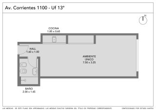 Monoambiente ubicado en el 13° piso al lateral, sobre Av. Corrientes, a metros del Obelisco y Av. 9 de Julio. Cuenta con baño completo, kitchenette y placard, con distribución funcional. Su orientación noreste aporta buena luz natural. Excelente conectividad con subtes B, C y D y numerosas líneas de colectivo. Ideal para inversión, alquiler temporario, estudio profesional o primera vivienda, en una zona con alta demanda permanente. Apto crédito bancario. Toda la información del aviso, incluyendo medidas, precio, impuestos, servicios, etc. son estimativos, sujetos a modificación y no vinculantes, según lo dispuesto en el art. 973, Cód. Civ. y Com.